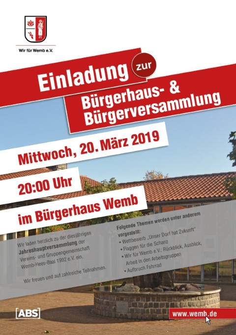 Einladung zur diesjährigen Jahreshauptversammlung der Vereins- und Gruppengemeinschaft Wemb-Hees-Baal 1992 e.V.